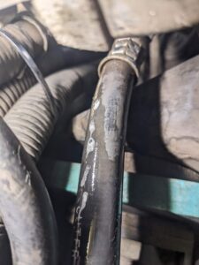 ホース屋さんになぜこのような漏れ方をするのか聞くと、ホースの劣化だそうです。